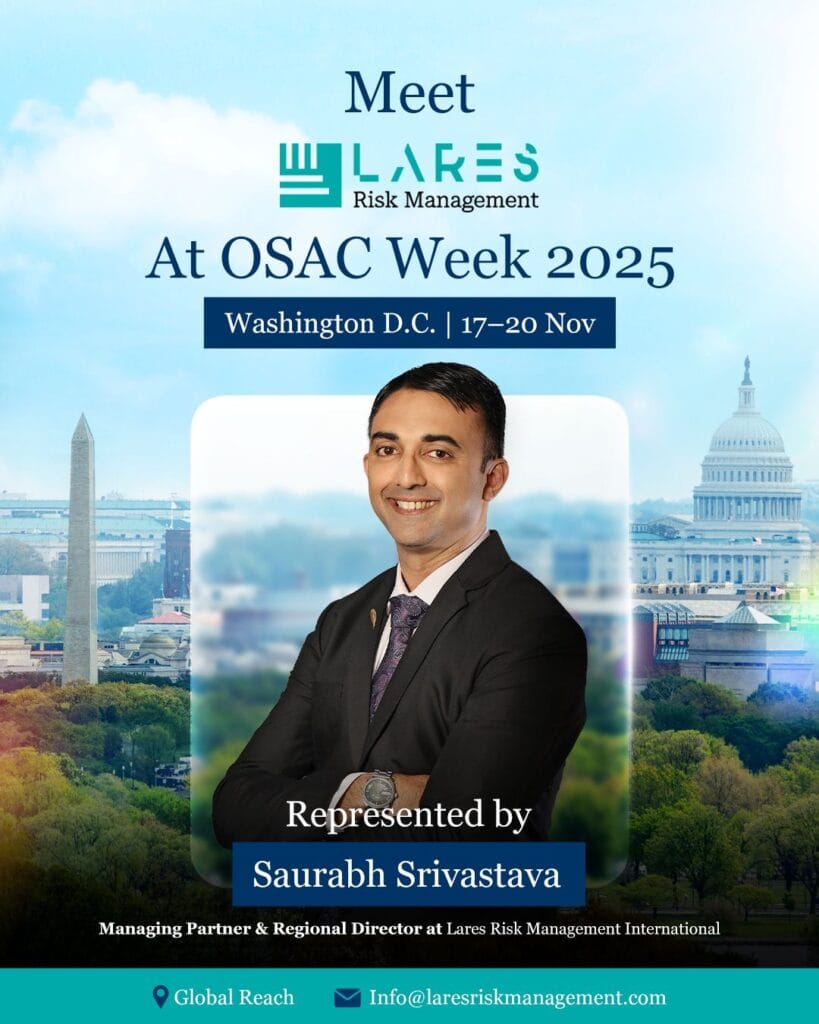 Lares Risk Management International is attending OSAC Week in Washington, D.C. from 17–20 November, represented by Saurabh Srivastava, Managing Partner and Regional Director.