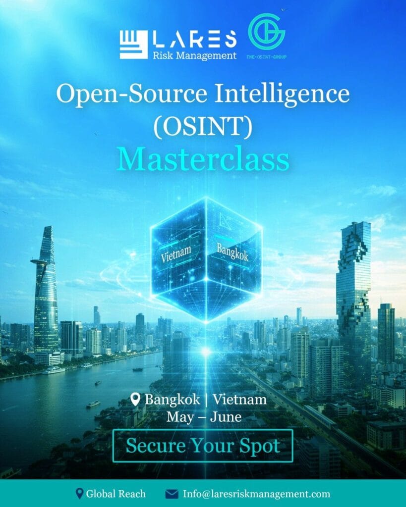 Following last year’s successful training, Lares Risk Management International is once again partnering with The OSINT Group to deliver practical, real-world OSINT training across the APAC region. These sessions are designed with a clear focus on application, giving participants hands-on experience with tools and techniques that can be used immediately in operational environments.